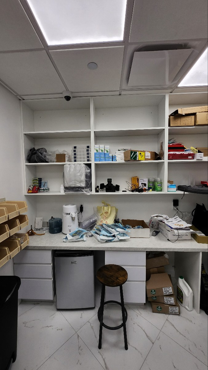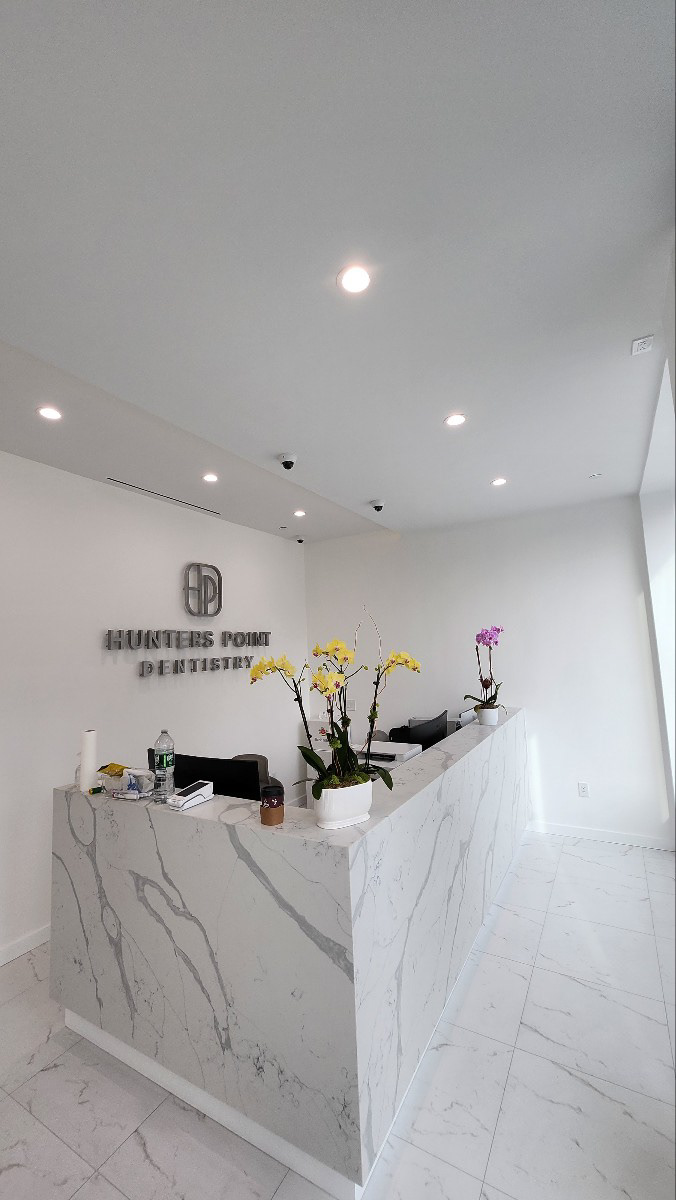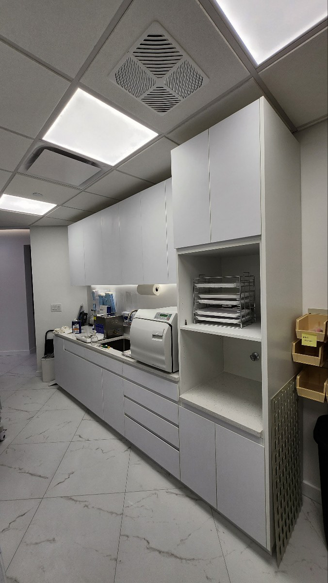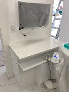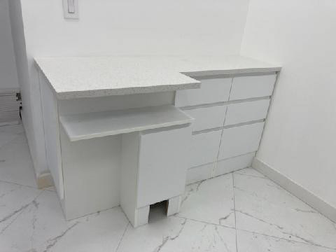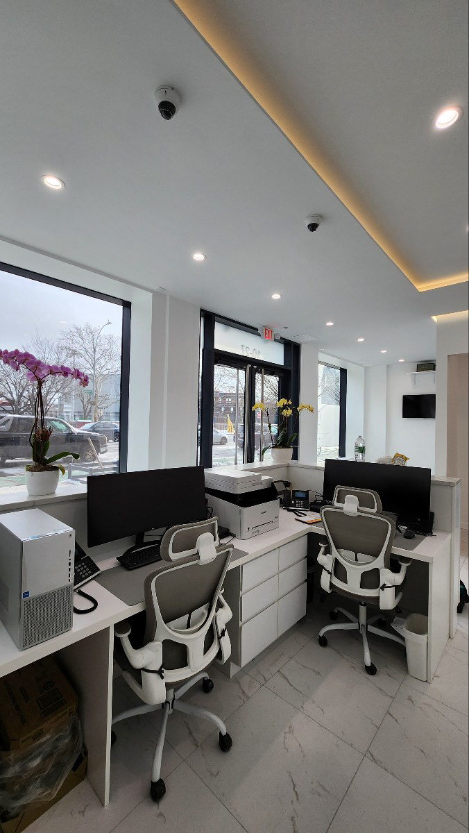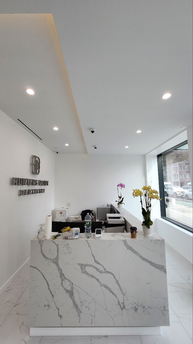 Custom countertop, cabinets, and shelves. Located in Long Island City.