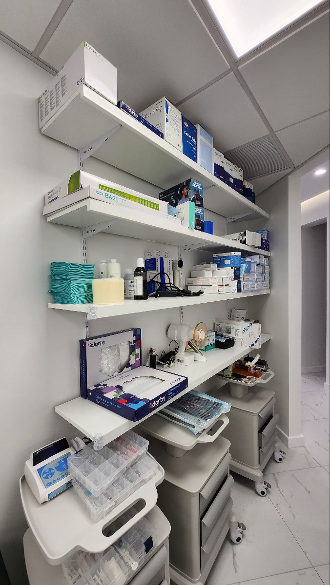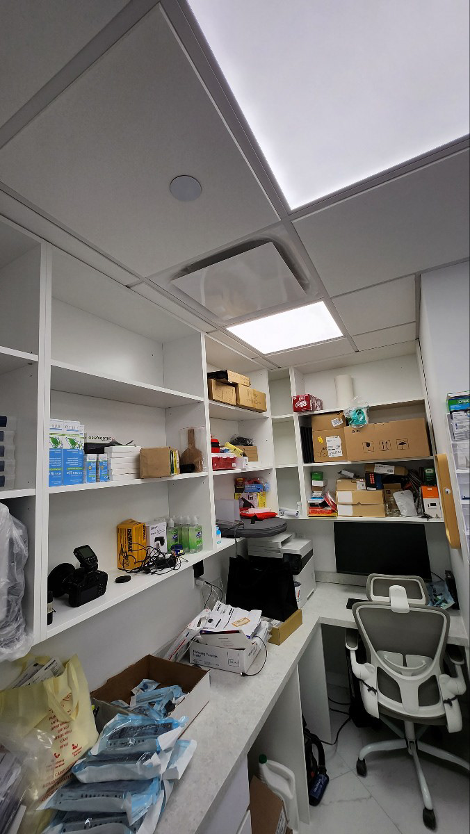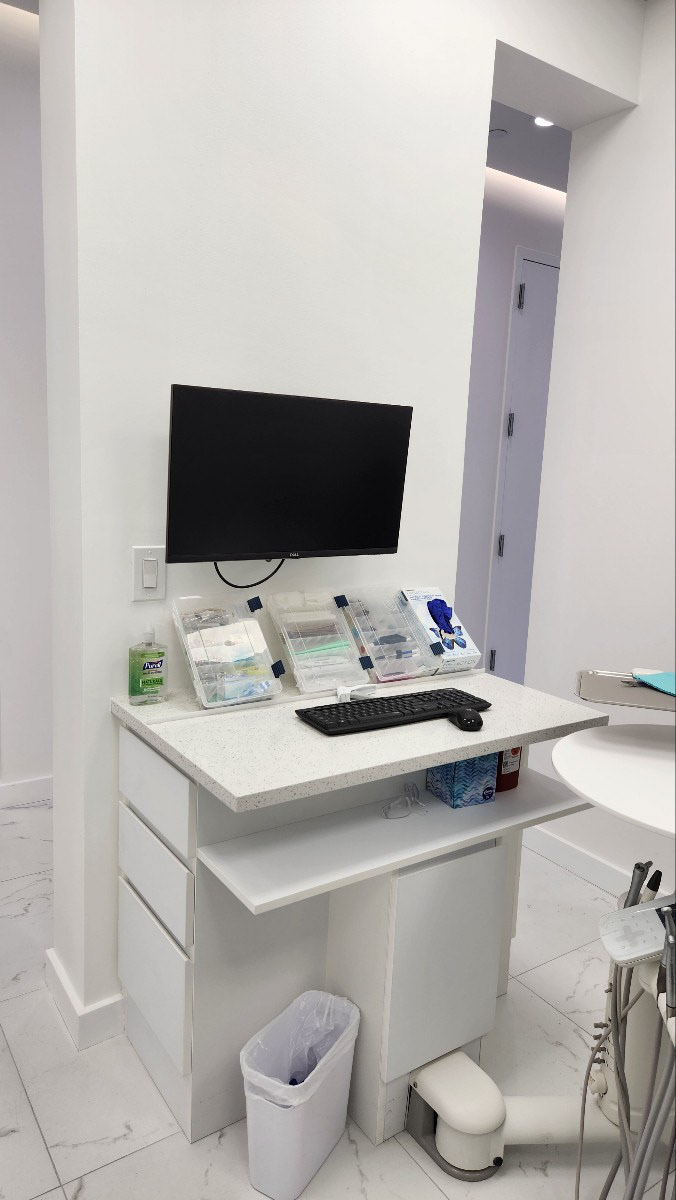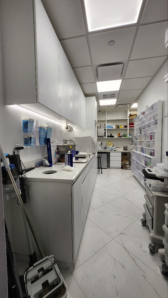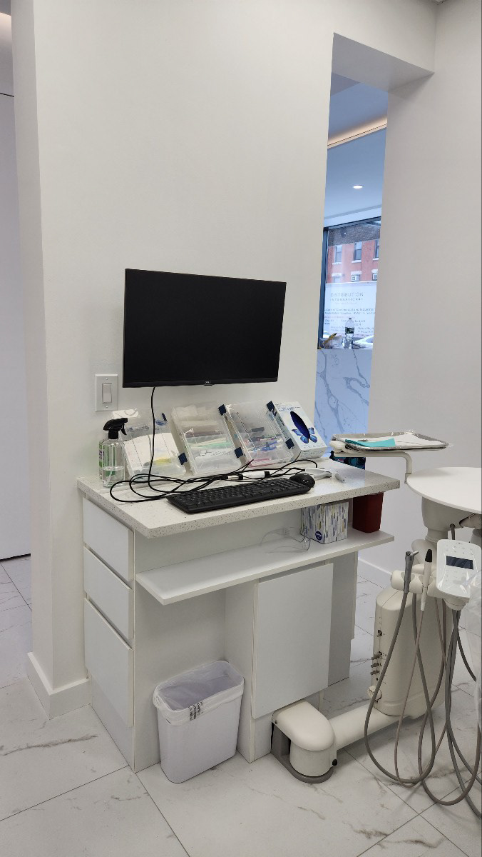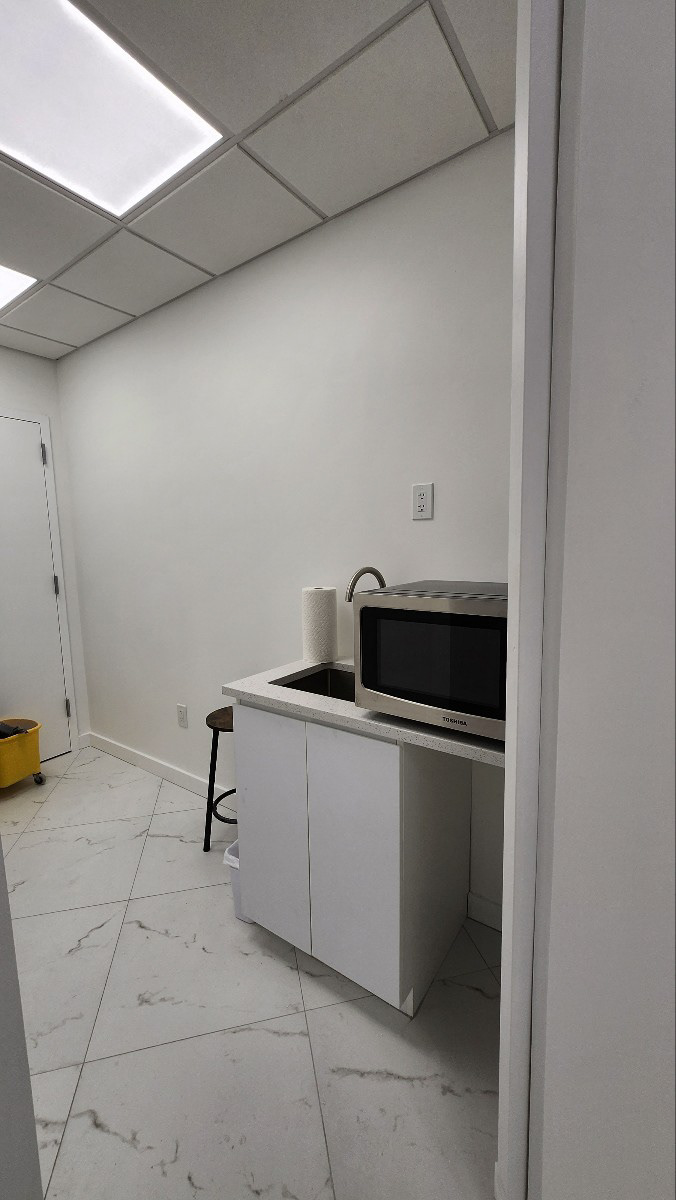Custom countertop, cabinets, and shelves. Located in Long Island City.