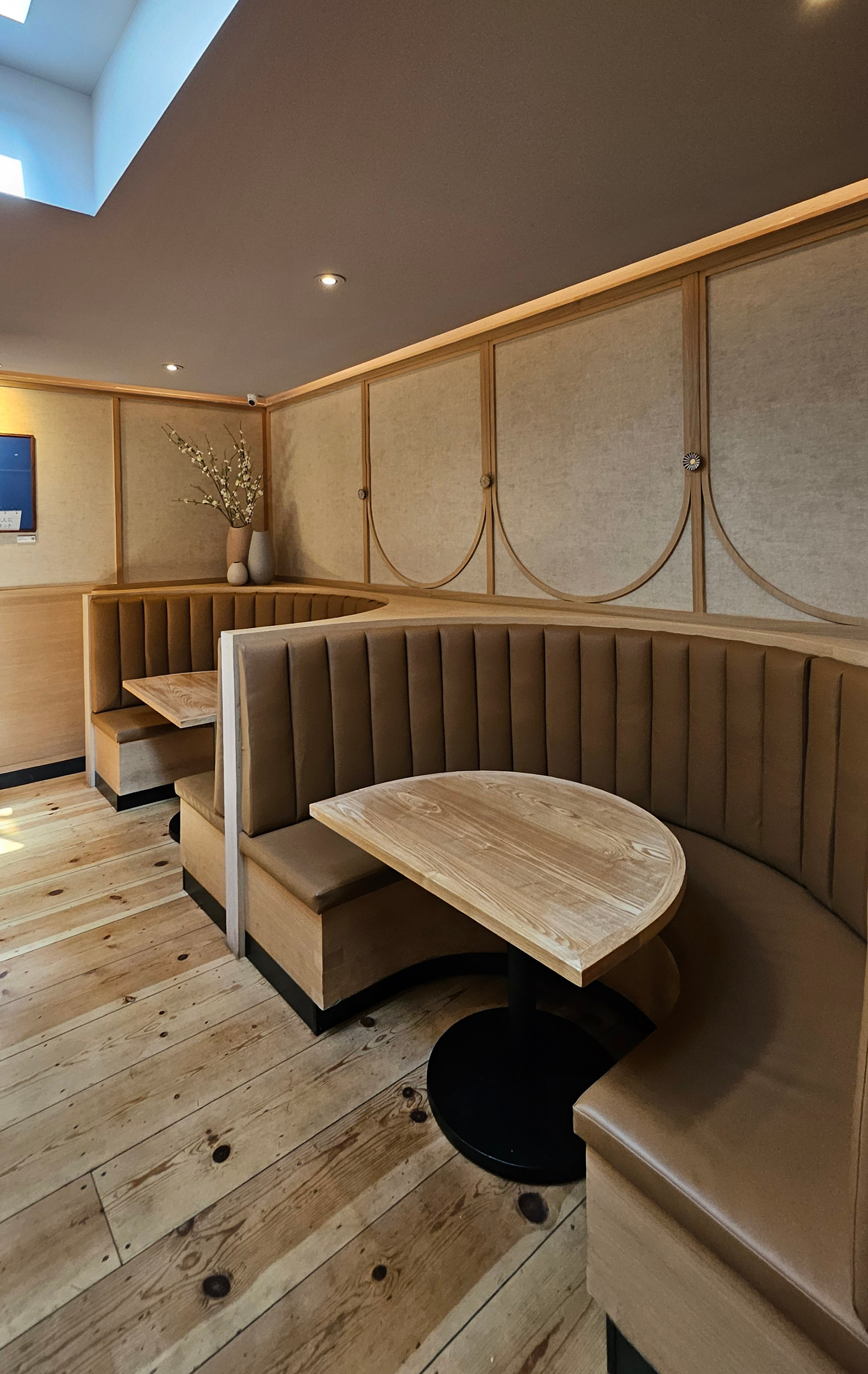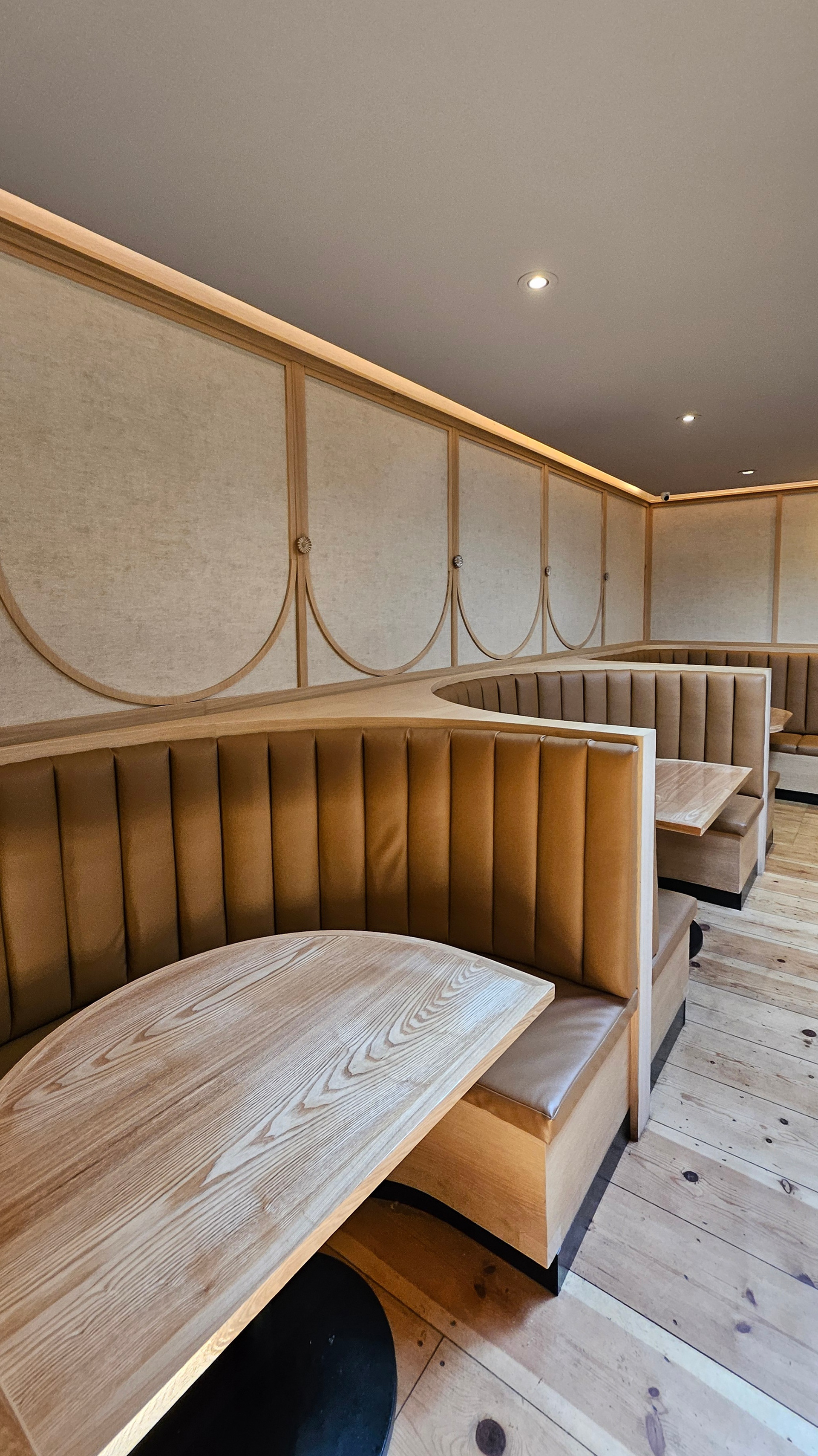 Custom round banquette, mill work.