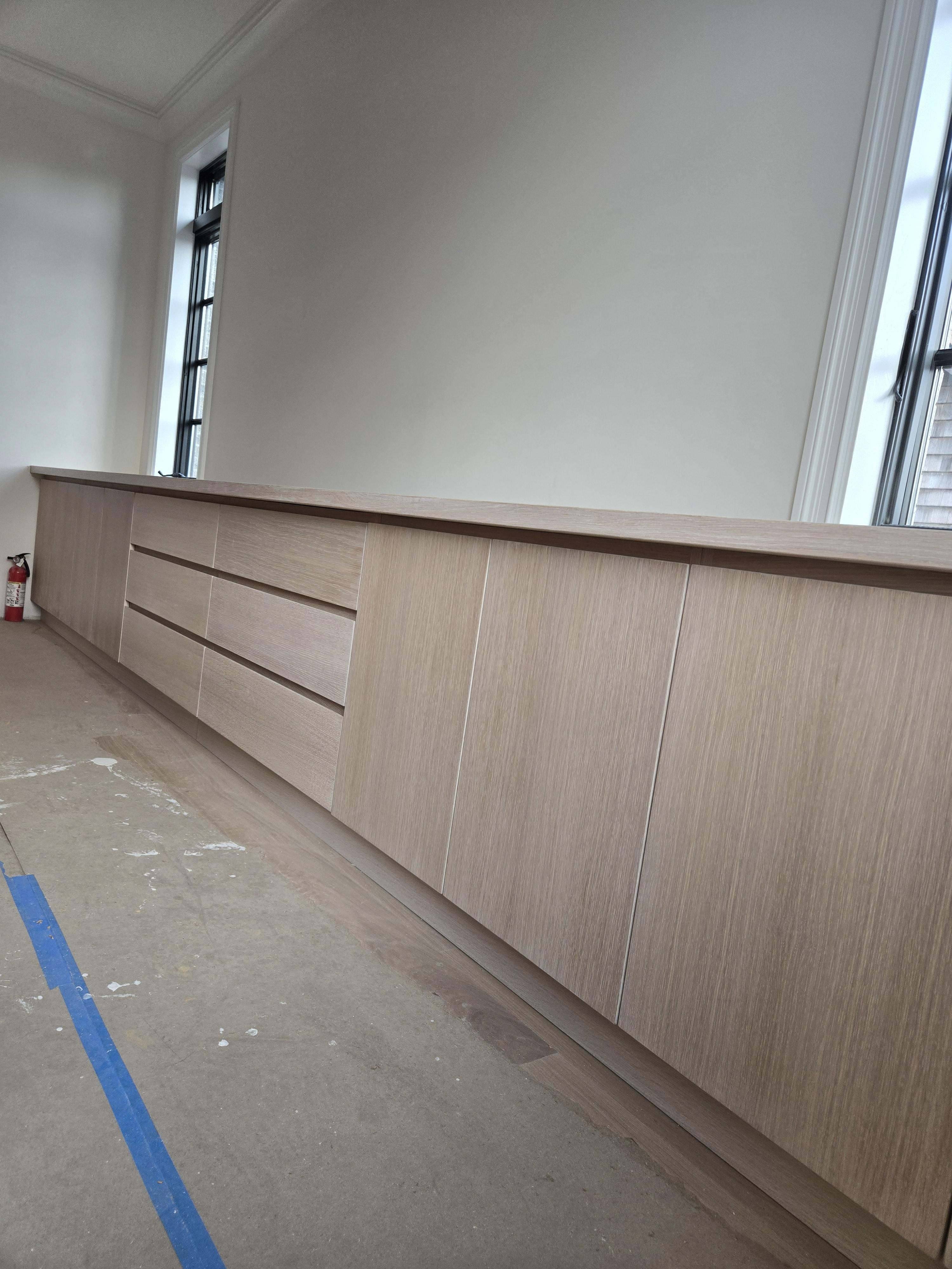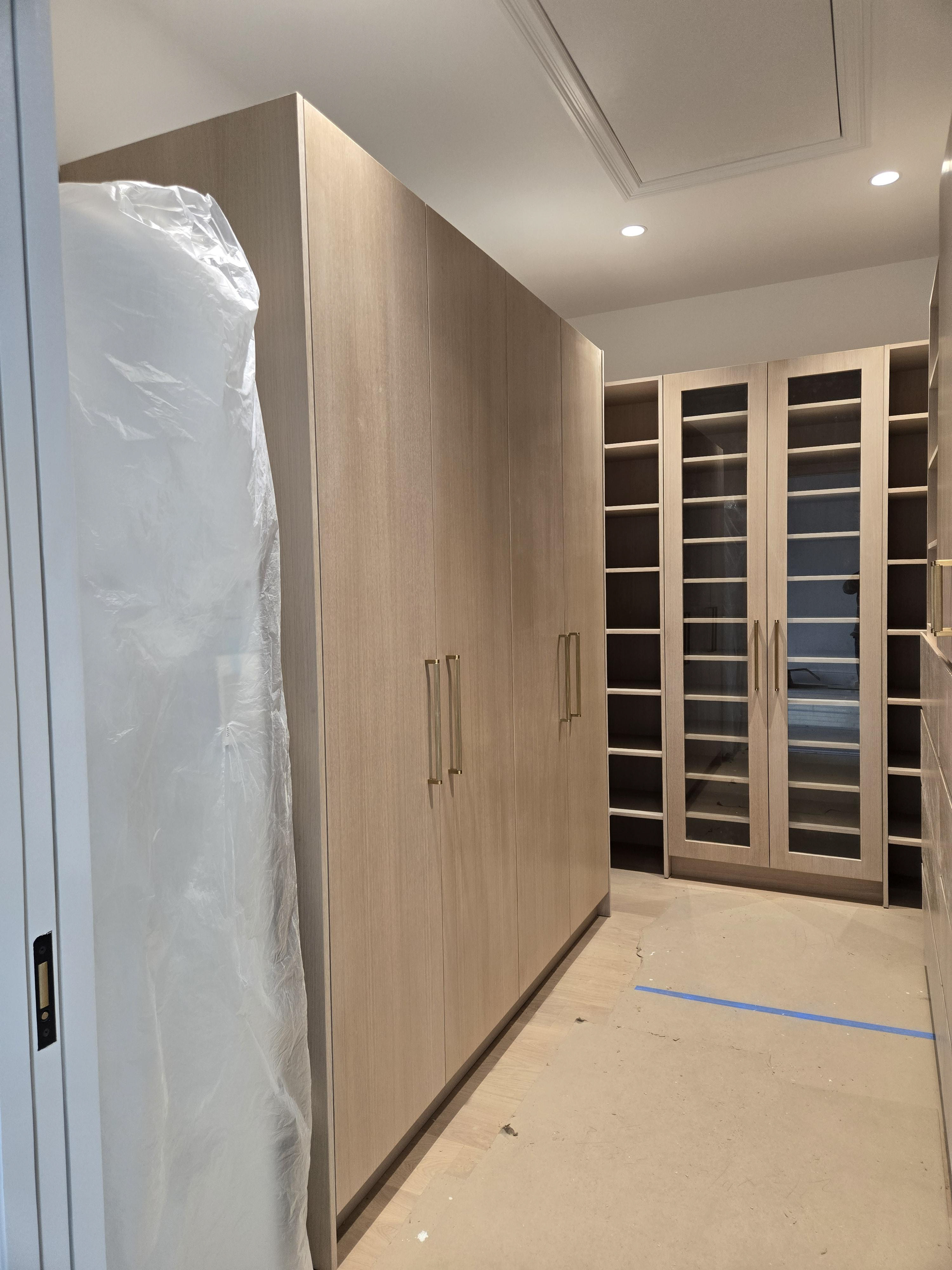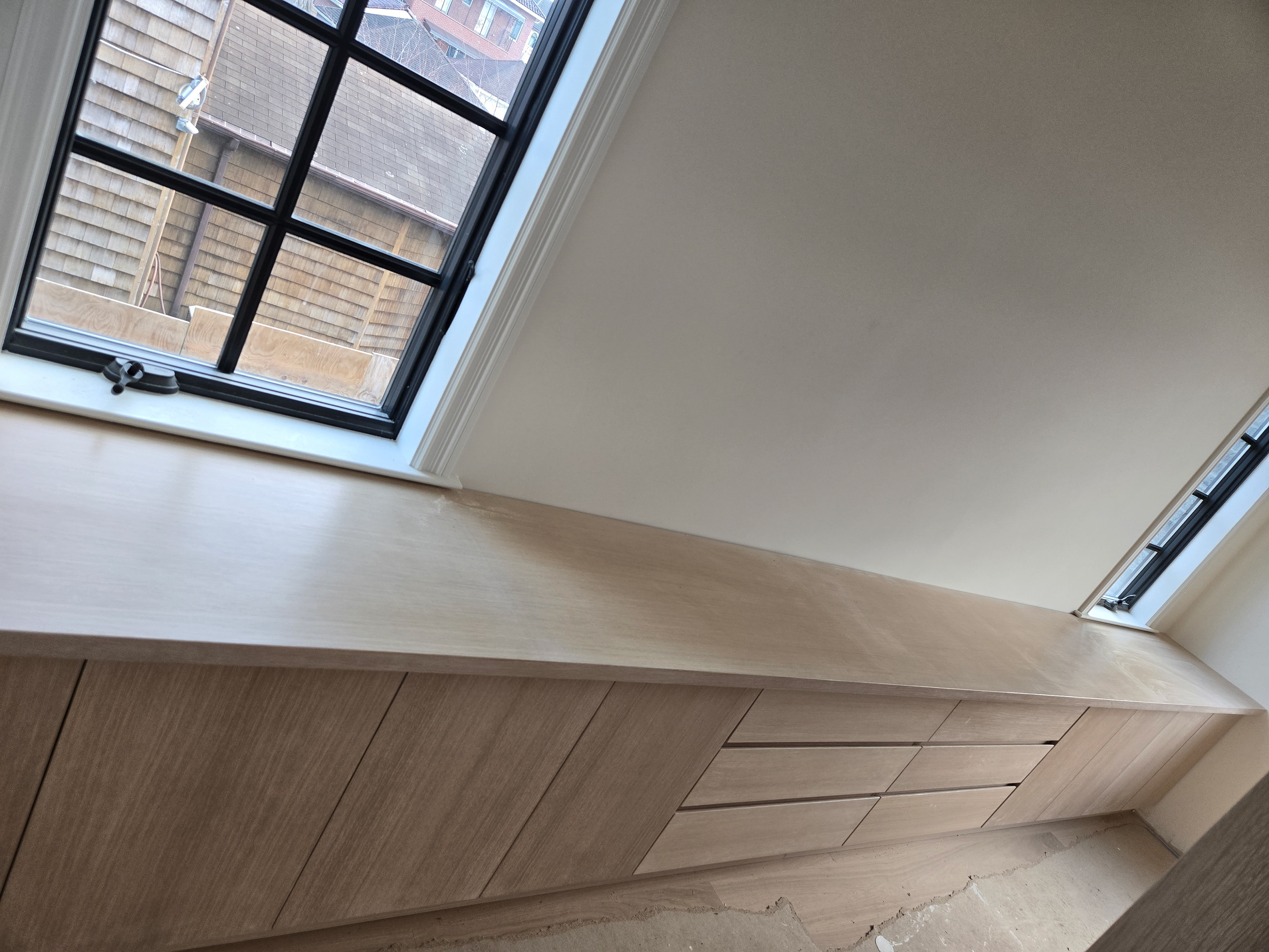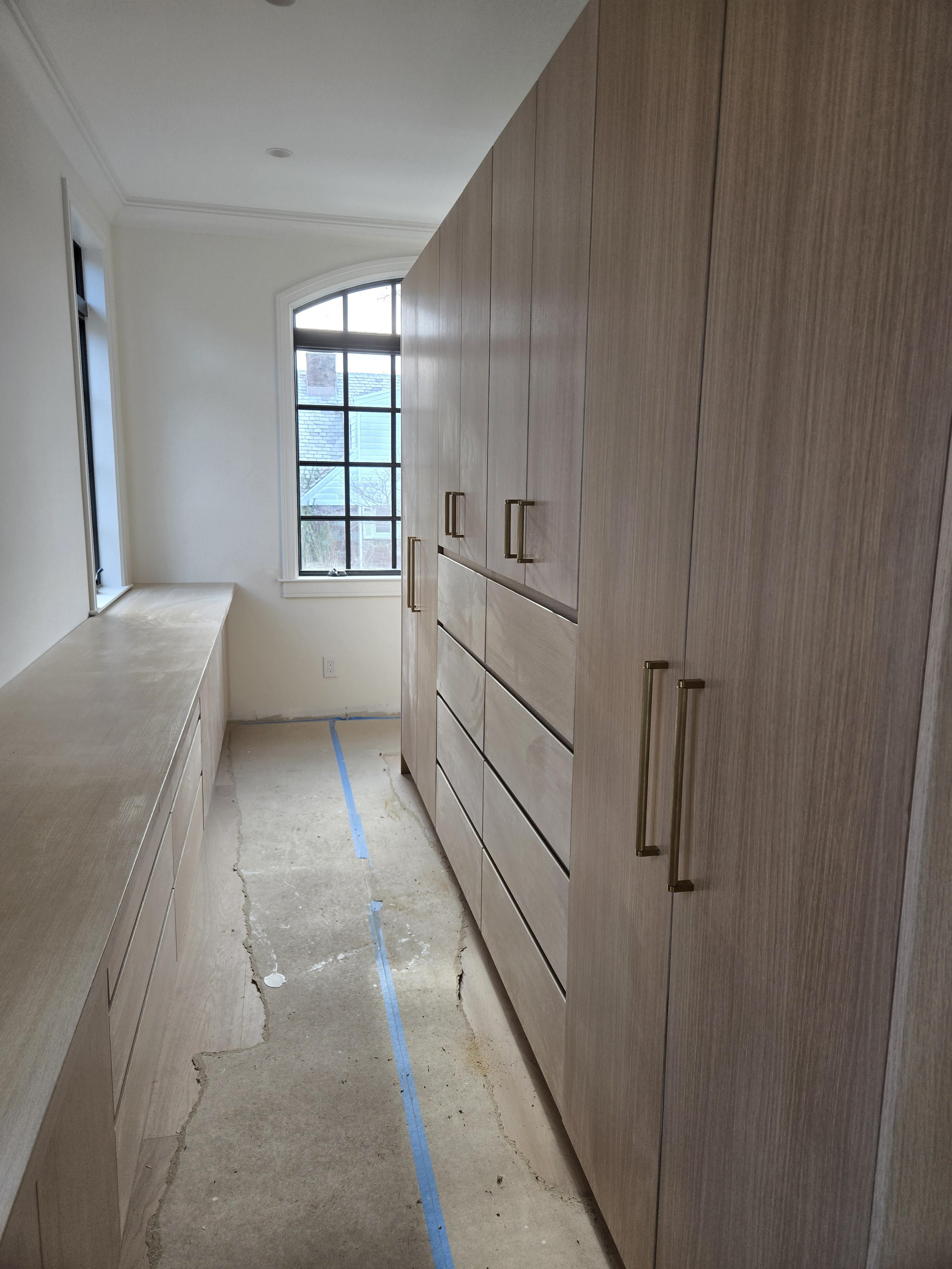 Custom Cabinets, round millwork, master bedroom closets, countertops, and banquettes, etc Located in Douglaston.